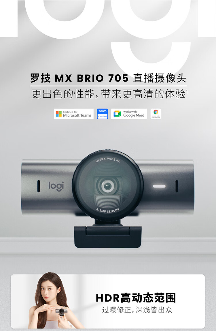 罗技(Logitech)大师系列 MX Brio 705 4K高清摄像头