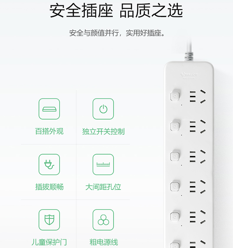 • 公牛(BULL)分控插座/插线板/插排6位分控全长1.8米 独立开关