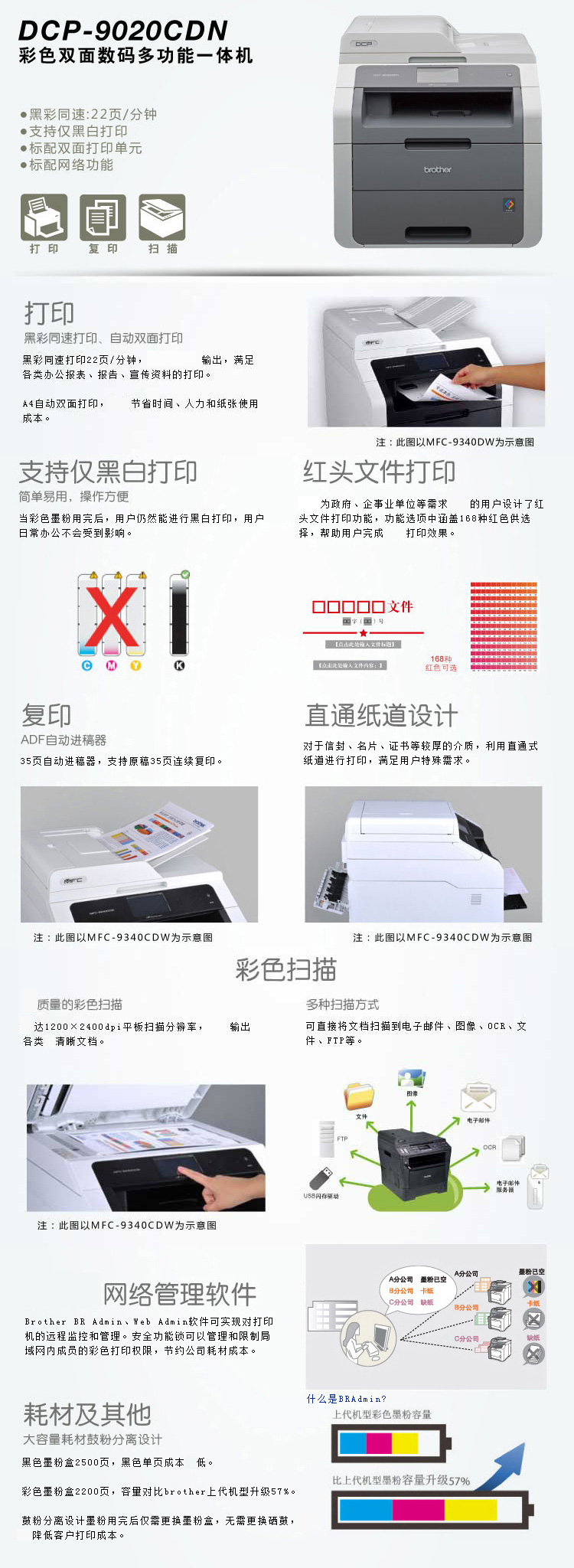 兄弟(brother) DCP-9020CDN彩色双面数码激光打印复印扫描一体机