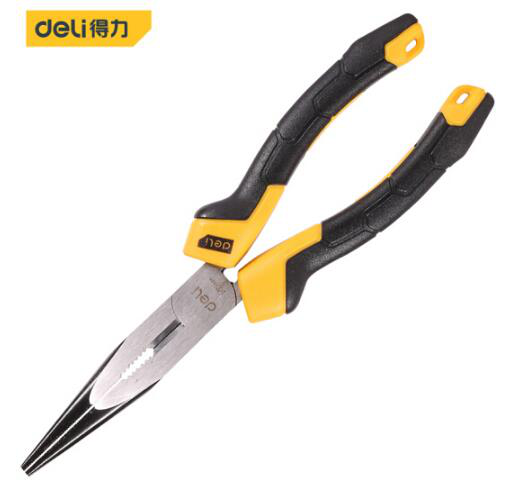 • 得力(deli) 胶柄尖嘴钳60号铬钒钢夹持钳手柄PVC包胶断线钳8英寸 DL2108Z