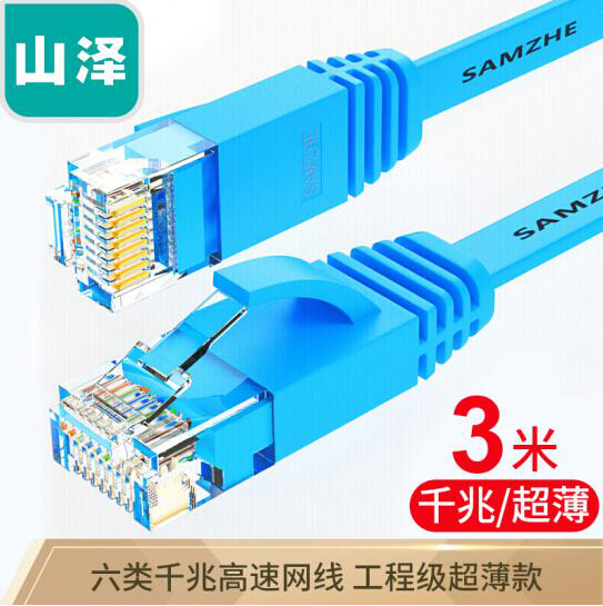 • 山泽(SAMZHE)六类网线 CAT6类千兆扁平电脑网络跳线 成品网线 蓝色3米SZ-603BE