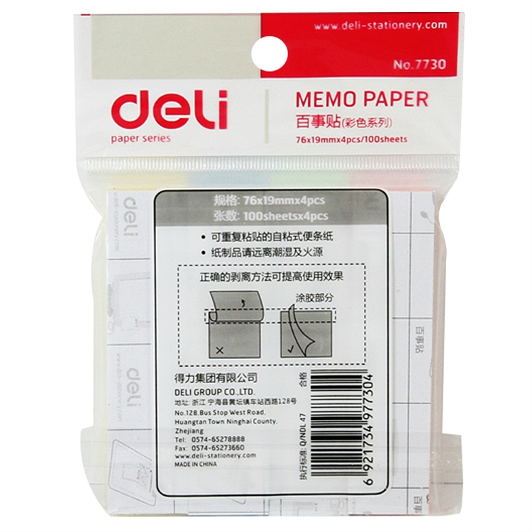 • 得力 7730 百事贴 76x19mm (单位:包) 混色