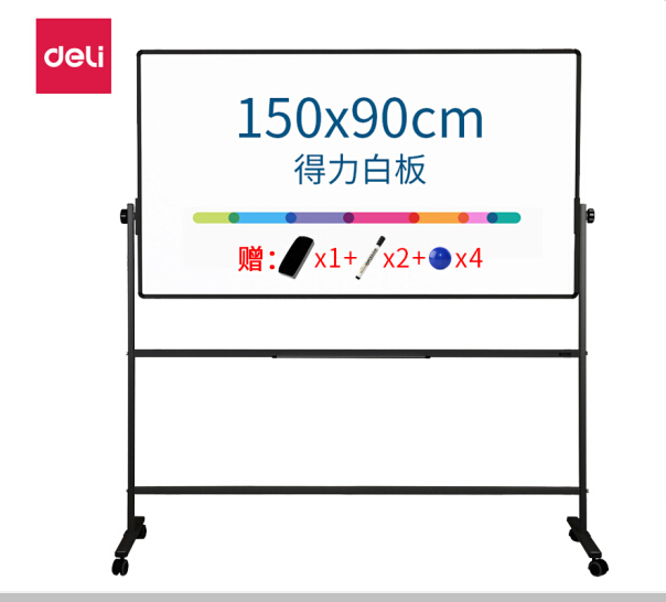 • 得力(deli)支架式白板180*90cmH型架可移动可翻转白板双面磁性办公会议写字板