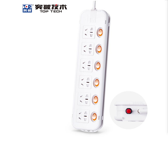 • 突破(TOP)T6K6新国标插座过载自动断电拖线板/6控6位10米