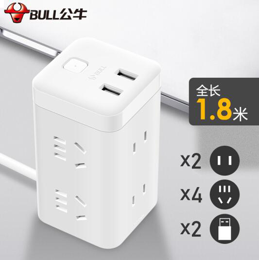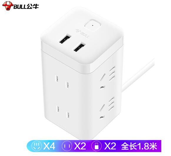公牛(BULL) 大魔方智能USB插座 GN-UU2126 白色魔方USB插座全长1.8米