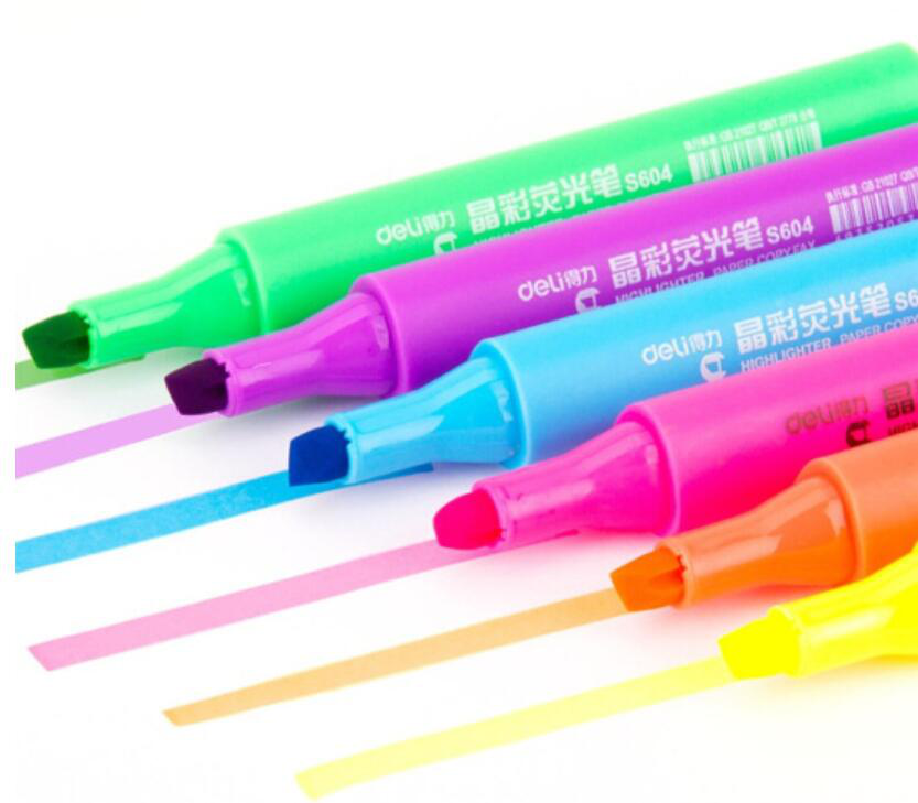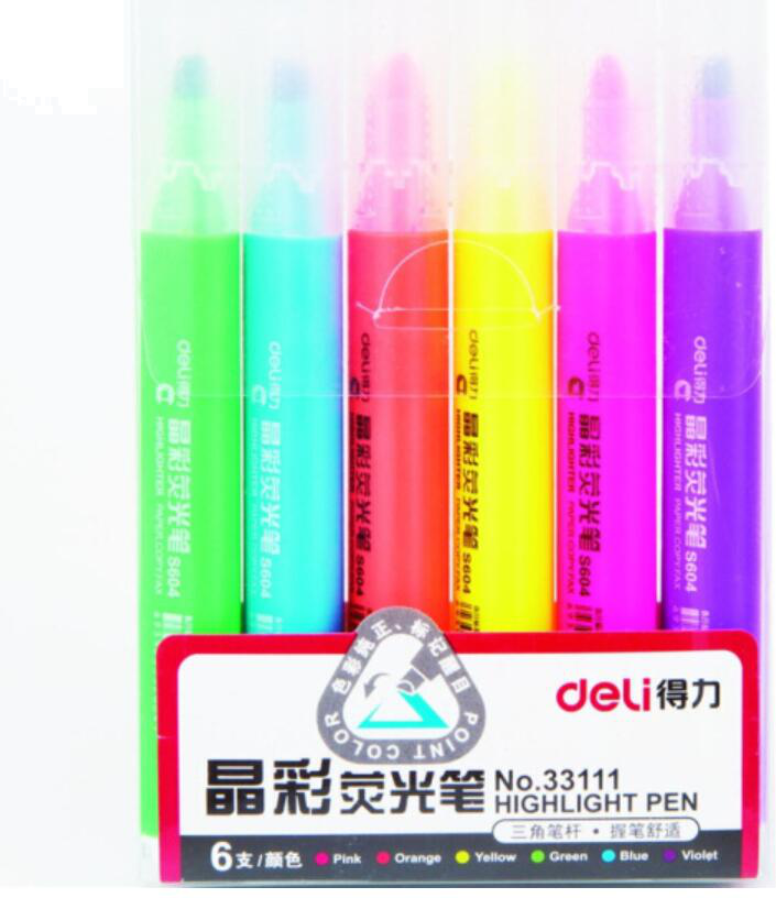 • 得力(deli)6色荧光笔考试复习重点标记笔 手帐可用水性记号笔6支/盒33111