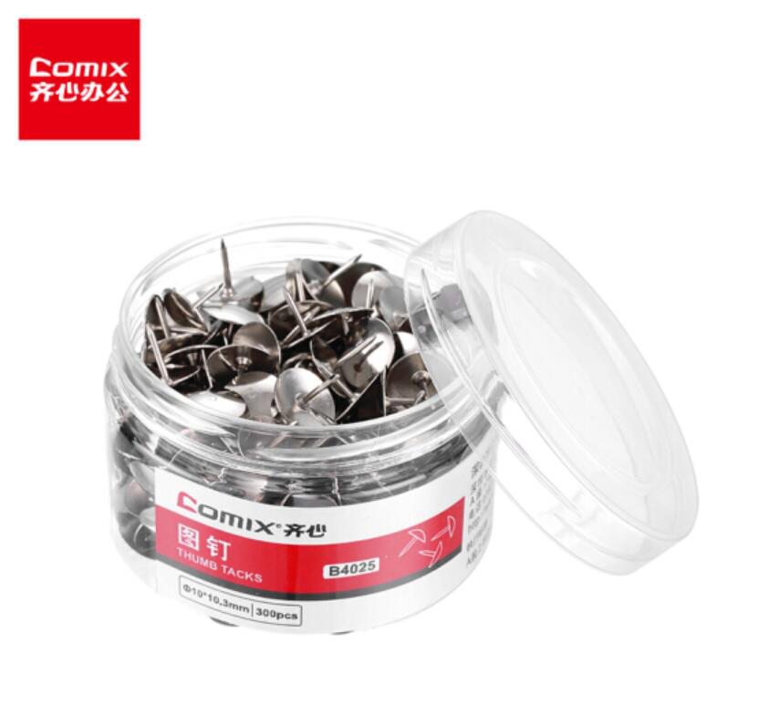 齐心(Comix) 镀镍图钉 按钉( 10*10.3mm) 300枚/筒 B4025