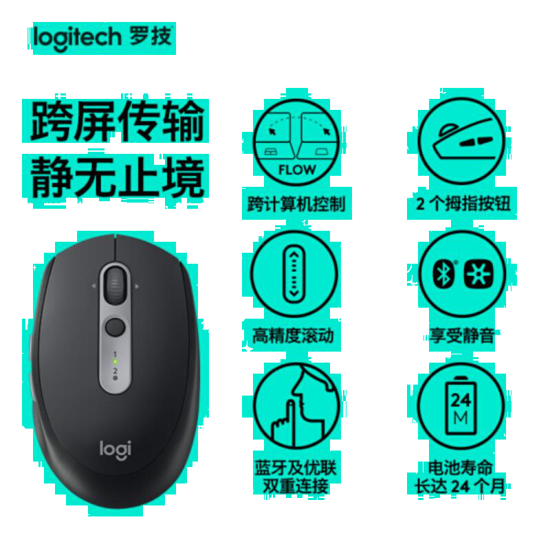 • 罗技(Logitech)M590 鼠标 无线蓝牙鼠标 办公鼠标 静音鼠标 对称鼠标 优联 石墨黑