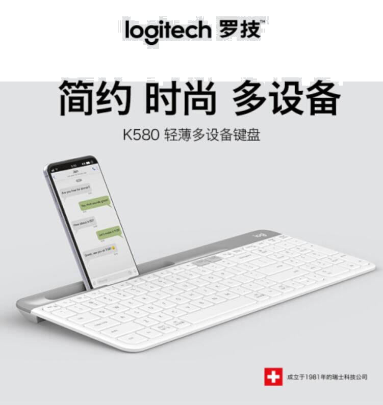 罗技(Logitech)K580 键盘 无线蓝牙键盘 办公键盘 便携超薄键盘 笔记本键盘 平板键盘