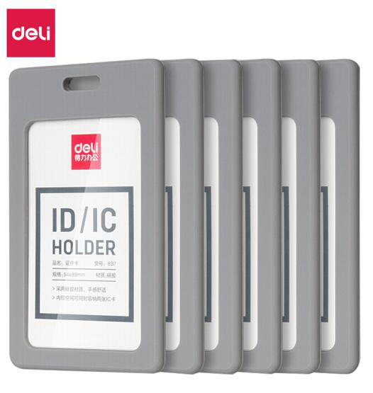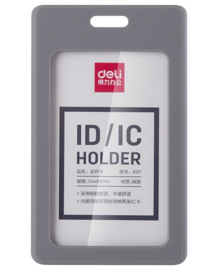 得力(deli)软胶竖式证件卡套 员工证公交卡套 灰色