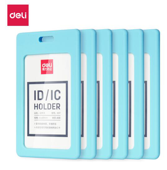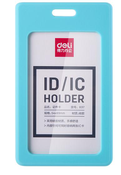 • 得力(deli)软胶竖式证件卡套 员工证公交卡套 蓝色