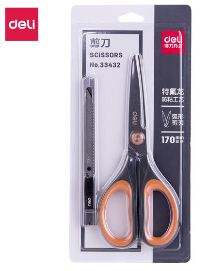 • 得力(deli)不锈钢剪刀170mm+金属美工刀小号 办公用品 颜色随机33432
