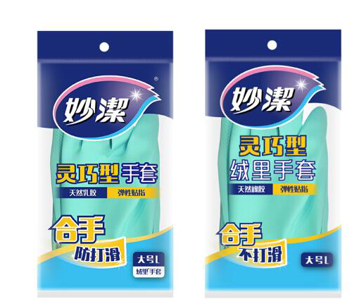 • 妙洁清洁手套 橡胶灵巧型家务用厨房洗碗皮 绒里大号