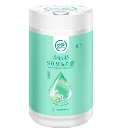 • 珍爱 湿巾清洁卫生杀菌湿纸巾 办公家用桶装80抽AB11