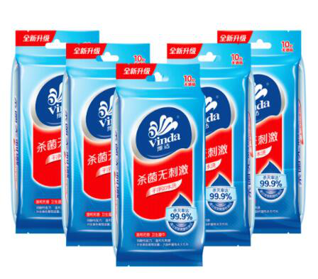 • 维达(Vinda) 湿巾纸巾 去菌卫生 10片独立装*5包 (量贩装)