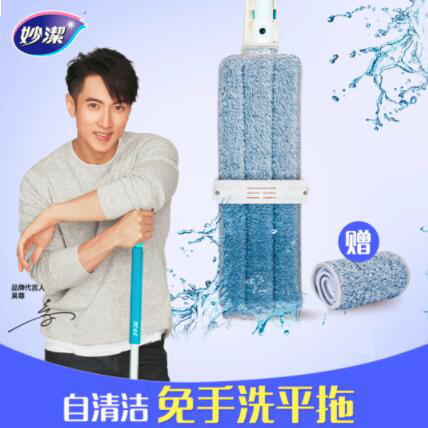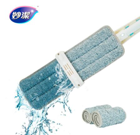 • 妙洁免手洗平板拖把 家用办公室木地板懒人自动墩布伸缩杆式拖把清洁工具神器吸推除尘 共2块替换布
