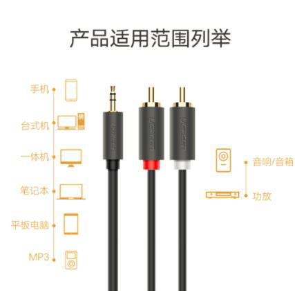 • 绿联(UGREEN)3.5mm转双莲花头音频线一分二 红白2RCA连接线 10米10514