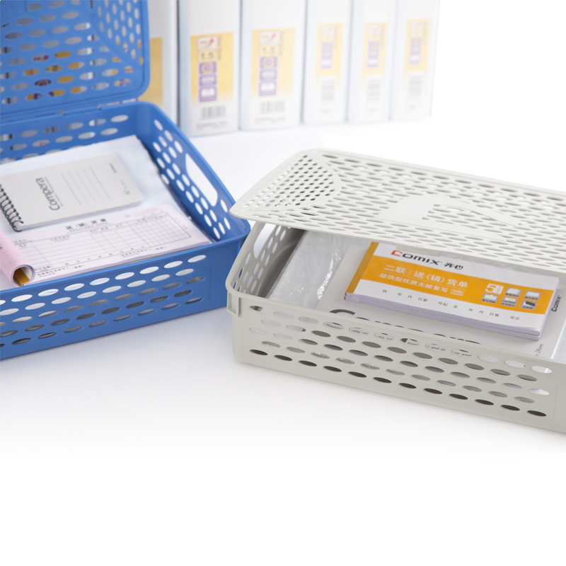 • 齐心 B2111 办公文件篮桌面文件框财务资料收纳架文件架收纳篮灰蓝