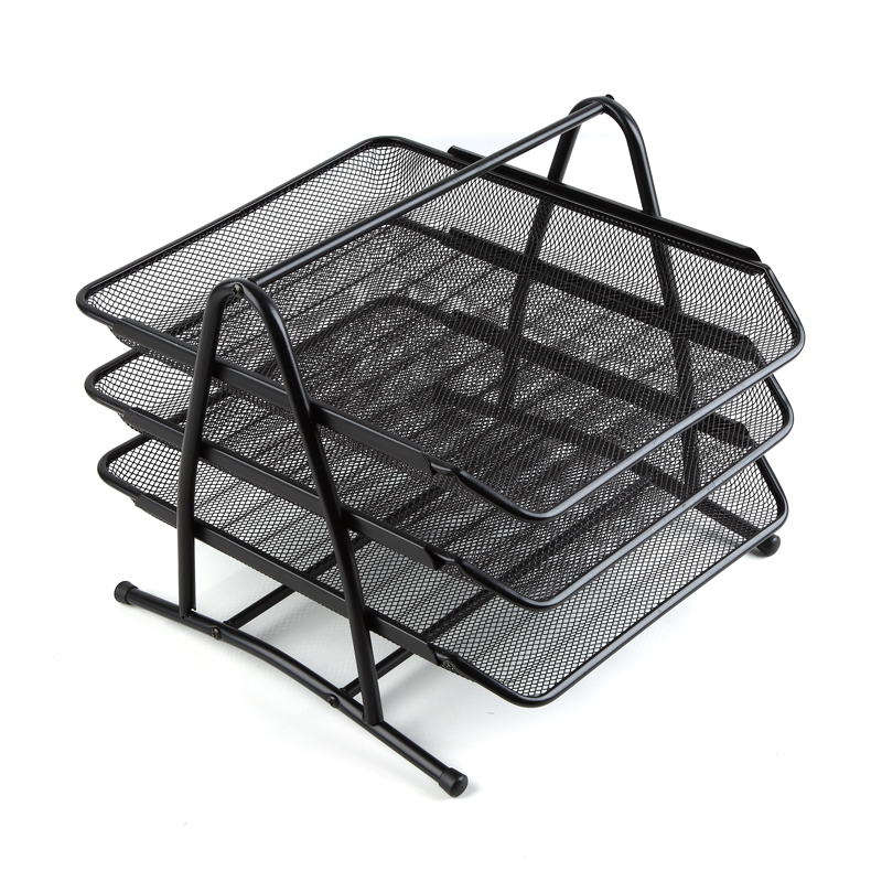 齐心 B2163 耐用铁网文件盘 三层 黑色