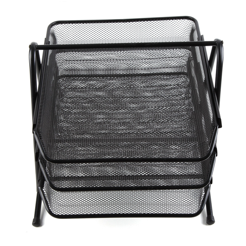 • 齐心 B2163 耐用铁网文件盘 三层 黑色
