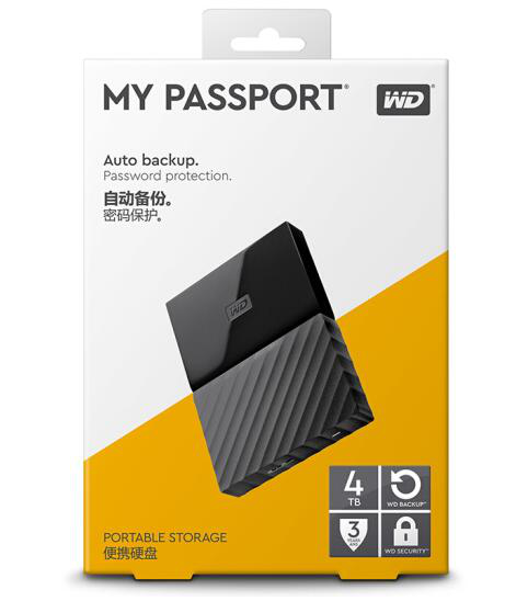西部数据My Passport 4TB 2.5英寸 经典黑 移动硬盘 WDBYFT0040BBK