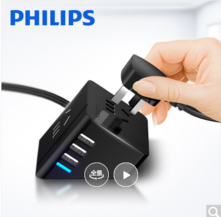商品代码:飞利浦(PHILIPS)小飞USB插座 排插/接线板/插线板/插排/拖线板 3USB全长1.5米 便携旅行桌面插板
