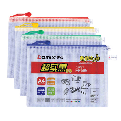 • 齐心 A1054 经济型网格拉链袋 10PCS/套 A4 配