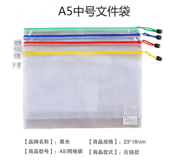 晨光(M&G)A5文件袋PVC网格袋拉链袋考试收纳袋透明袋票据袋ADM94508 A5