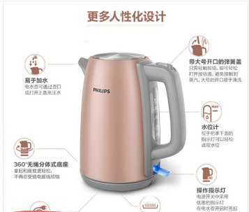 • 飞利浦(PHILIPS)电水壶 304不锈钢1.7L大容量带PTC保温功能 HD9319
