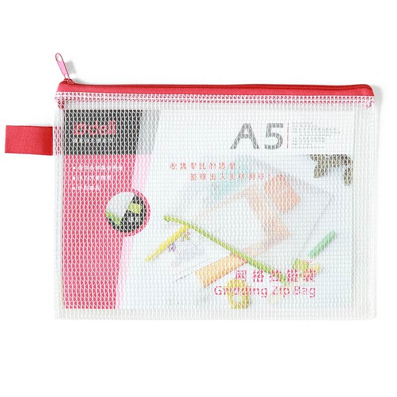 • 得力 5591 网格拉链袋透明拉链袋 A5 混色