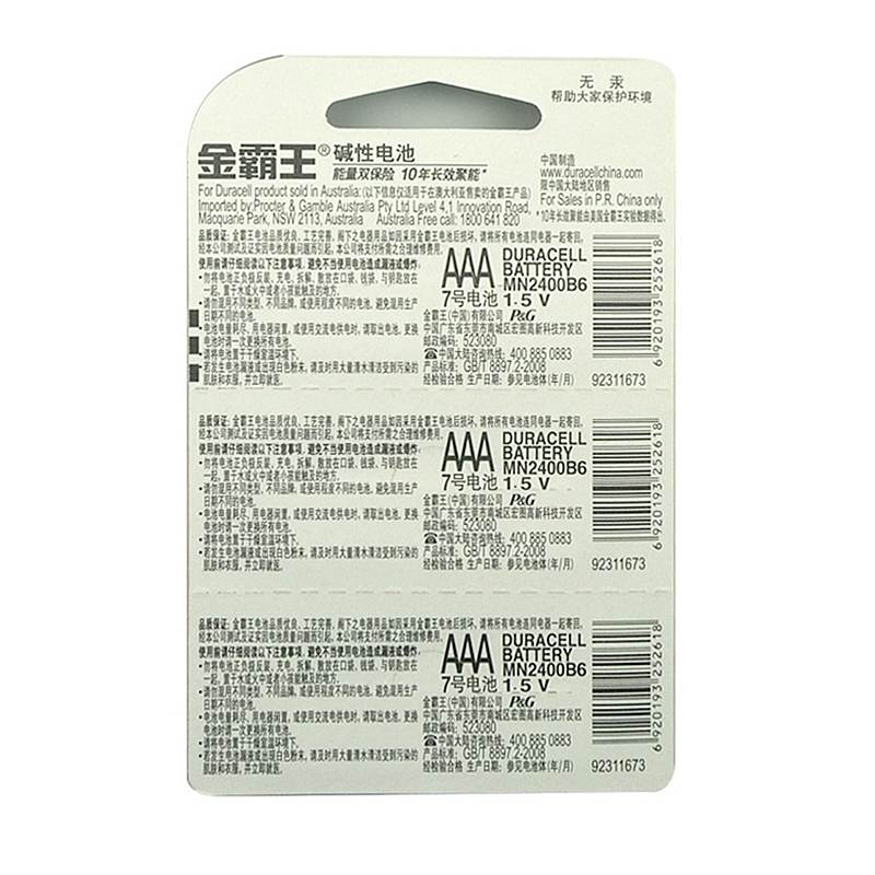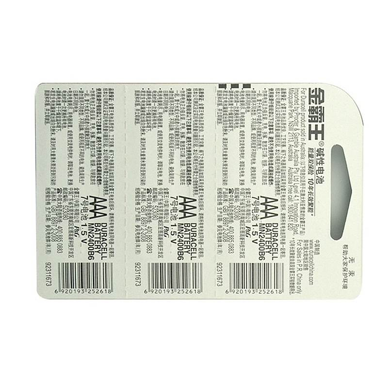 • 金霸王 LR03/7号 碱性电池 (单位:节)