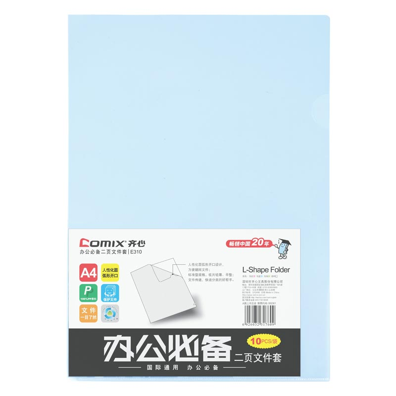 齐心 E310 办公必备二页文件套 A4 10个/套 蓝