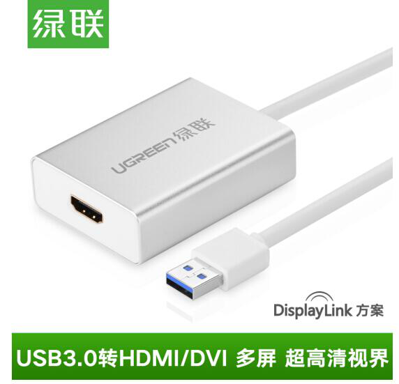 • 绿联 USB3.0转HDMI/DVI转换器 笔记本电脑接投影仪显示器线转接头 银色 40229