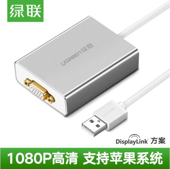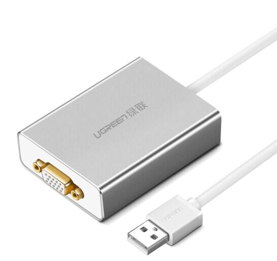 • 绿联 USB转VGA母头转换器台式机笔记本接投影仪显示器线转接头 银色 40244