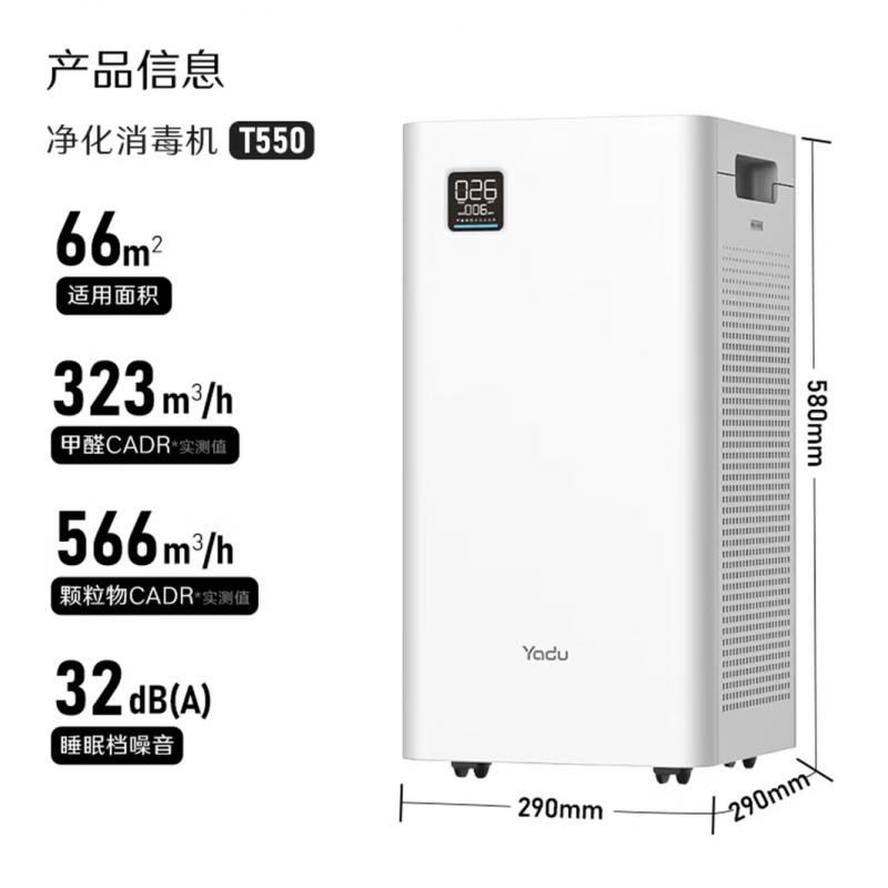 • 亚都(YADU)空气净化器 卫健委备案 冠状病消毒机 UFCO分解技术除甲醛烟味异味除甲流KJ550F-T550(Hi)甲醛数显