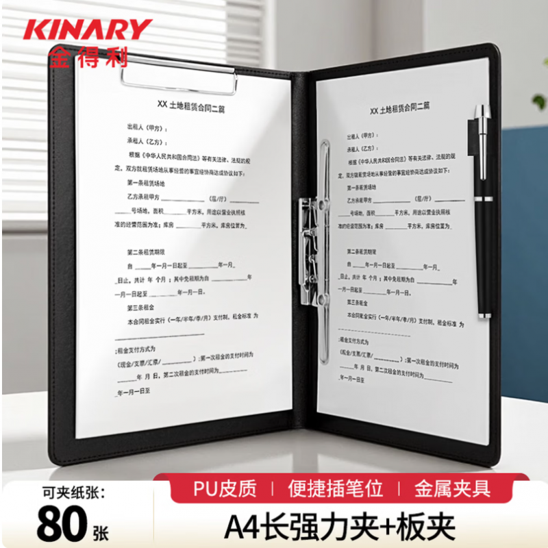 • 金得利A4多功能文件夹双强力夹皮质黑色AF1802